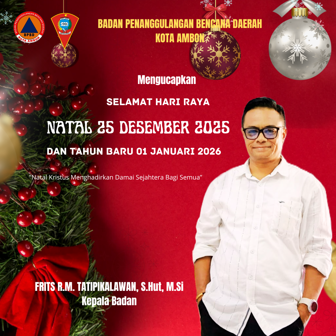 Desember 21, 2025Desember 21, 2025oleh sorotmaluku Iklan Pemkot BPBD Kota Ambon Mengucapkan Selamat Natal 25 Desember 2025 dan Tahun Baru 1 Januari 2026 sorotmaluku-Iklan-129 Dilihat Post Views: 129 Jangan LewatkanBPPRD Kota Ambon Mengucapkan Selamat Paskah Tahun 2026Dispora Kota Ambon Mengucapkan Selamat Idul Fitri 1 Syawal 1447 HijriahDLHP Kota Ambon Mengucapkan Selamat Idul Fitri 1 Syawal 1447 HijriahWakil Walikota Ambon Mengucapkan Selamat Natal dan Tahun Baru 2026Walikota Ambon Mengucapkan Selamat Natal dan Tahun Baru 2026Dinas PUPR Maluku Mengucapkan Selamat Natal 25 Desember 2025 dan Tahun Baru 1 Januari 2026