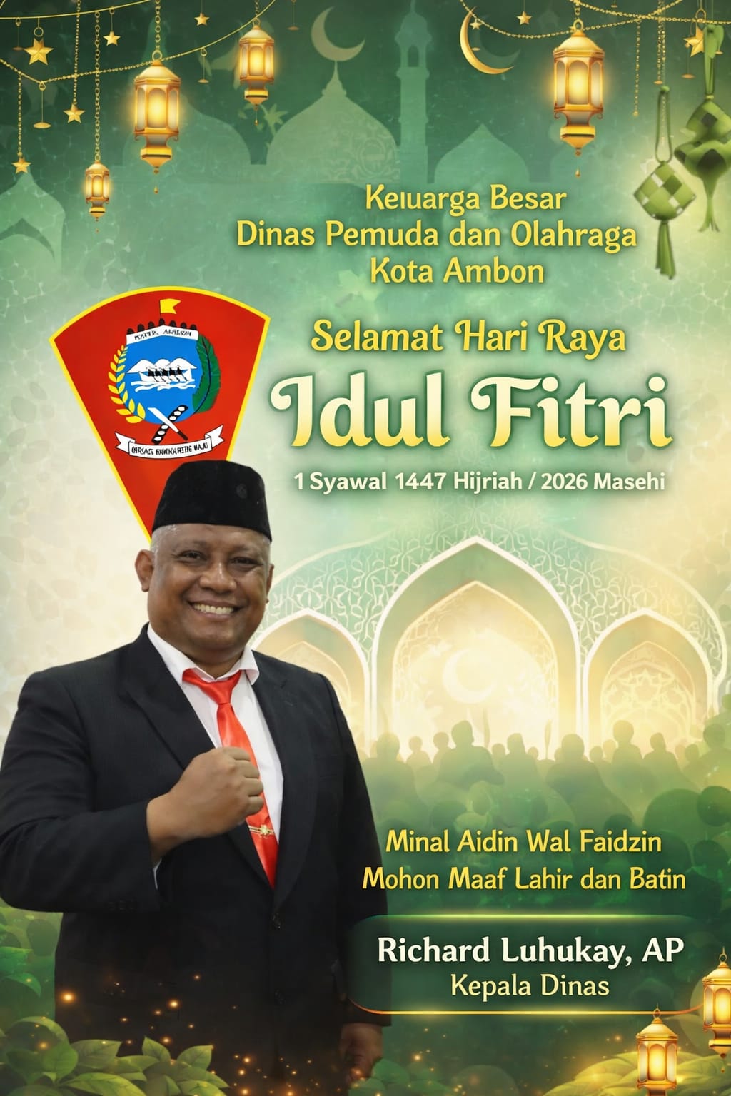Maret 17, 2026Maret 30, 2026oleh sorotmaluku Iklan Dispora Kota Ambon Mengucapkan Selamat Idul Fitri 1 Syawal 1447 Hijriah sorotmaluku-Iklan-32 Dilihat Post Views: 32 Posting TerkaitKetua SOKSI Maluku Mengucapkan Selamat Hari Sumpah Pemuda Tahun 2025Pemkot Ambon Mengucapkan Selamat Hari Lingkungan Hidup Sedunia Tahun 2025Jangan LewatkanBPPRD Kota Ambon Mengucapkan Selamat Paskah Tahun 2026DLHP Kota Ambon Mengucapkan Selamat Idul Fitri 1 Syawal 1447 HijriahWakil Walikota Ambon Mengucapkan Selamat Natal dan Tahun Baru 2026Walikota Ambon Mengucapkan Selamat Natal dan Tahun Baru 2026Dinas PUPR Maluku Mengucapkan Selamat Natal 25 Desember 2025 dan Tahun Baru 1 Januari 2026Dinas Lingkungan Hidup dan Persampahan Kota Ambon Mnngucapkan Selamat Natal 25 Desember 2025 dan Tahun Baru 1 Januari 2026