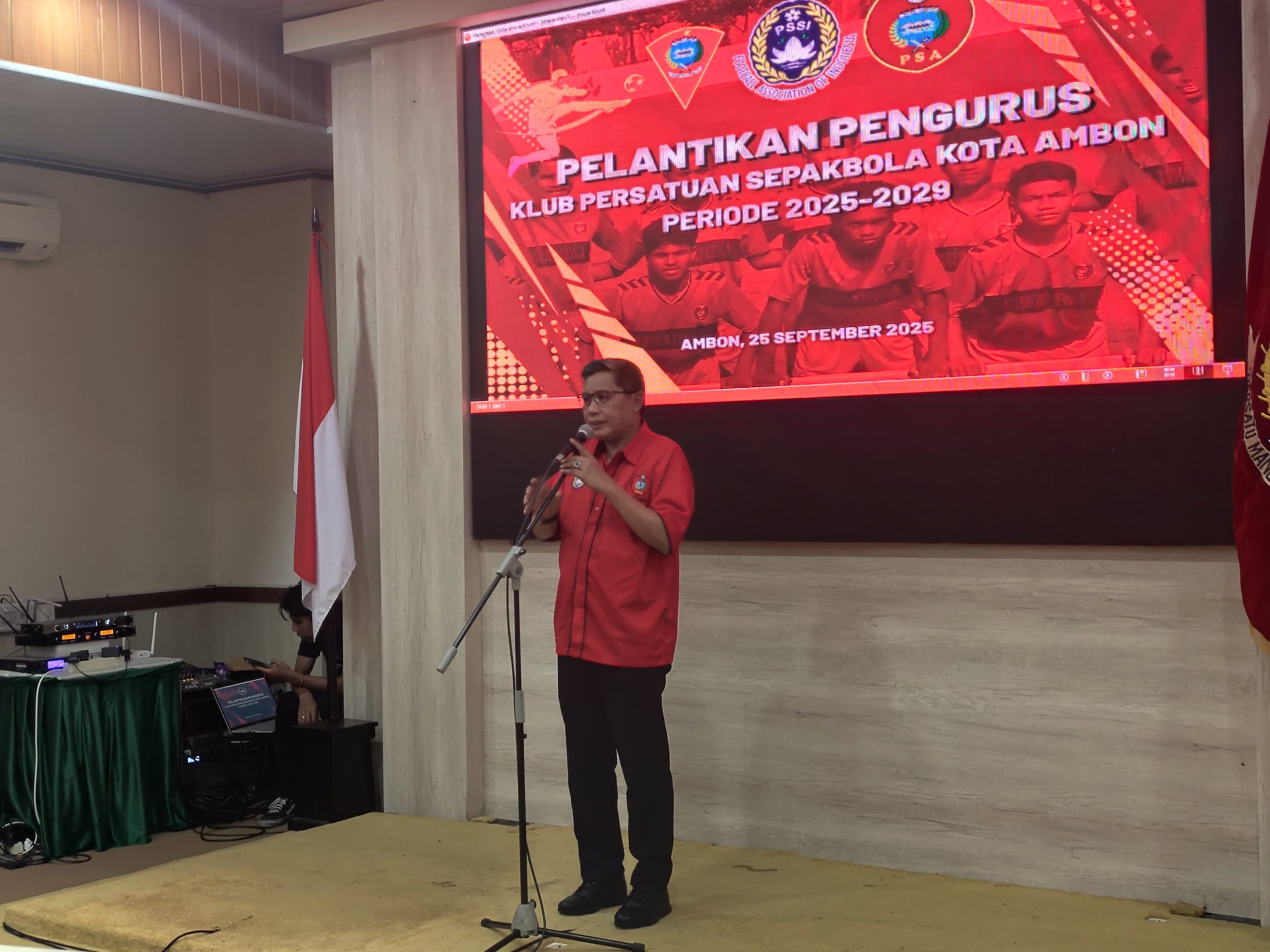 SM.COM, Ambon, 25 September 2025 — Wali Kota Ambon, Drs. Bodewin M. Wattimena, M.Si, secara resmi melantik pengurus baru Persatuan Sepakbola Kota Ambon (PSA) periode 2025–2029 dalam sebuah upacara yang digelar di Ruang Rapat Darwin, Kamis (25/09) pukul 10.00 WIT.